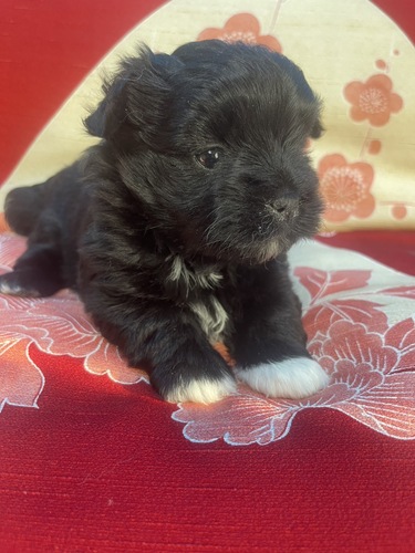 ご覧頂きましてありがとうございます。 ママ犬 マルチーズ パパ犬ポメラニアン(オレンジ)のハーフの女の子です。 少し小ぶりですが元気に成長中。 カラーは、ブラックです。 ご家族でご検討宜しくお願い致します。 | |||